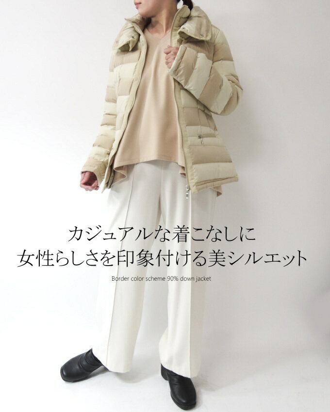 【SALE70%OFF】ダウン90%配色ボーダーダブルカラージャケット ミセス ファッション 50代 40代 60代 70代 アラフォー 秋冬 母の日 プレゼント