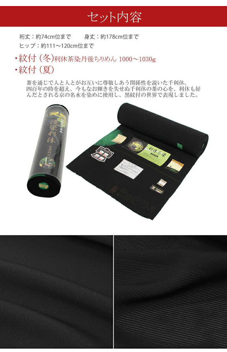 【セット内容】・紋付 (冬)丹後三越ちりめん420匁・紋付 (夏)駒絽160匁・襦袢 (冬)ポリエステル100%・襦袢 (夏)ポリエステル100%・帯 (冬)・帯 (夏)・帯芯(冬)綿100%・帯芯(夏)綿100%・胴裏正絹100%・衿裏正絹100%・衿芯(冬)綿100%・衿芯(冬)綿100%・半衿(冬)ポリエステル100%・半衿(夏)ポリエステル100%・半・帯締め(冬)正絹100%・帯締め(夏)正絹100%・帯揚げ(冬)正絹100%・帯揚げ(冬)正絹100%・着付けベルト・伊達締め・腰紐×2本・腰紐×2本・帯枕・草履・バッグ・草履ネーム・ふくさ・キルティングバッグ■草履はM・L・LLサイズからお選びいただけます。
