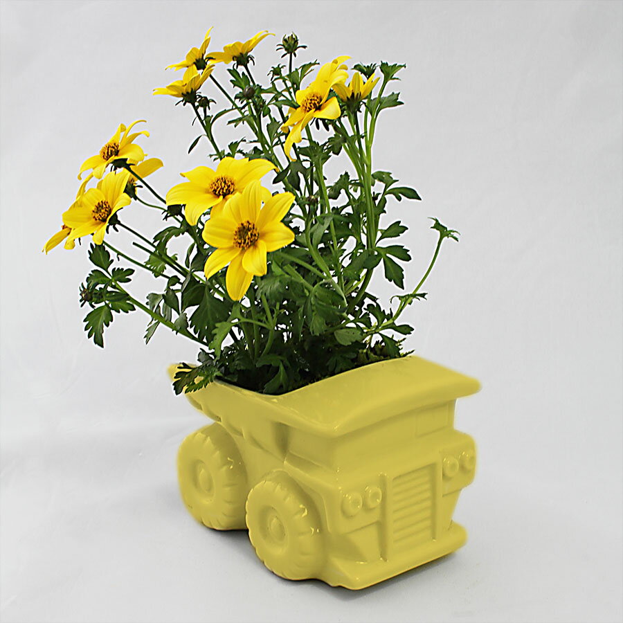 植物を育てるダンプカー!【ダンプ型九谷焼ミニポット】 超レアなダンプカー型のミニポットです。