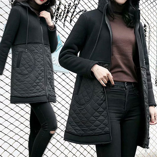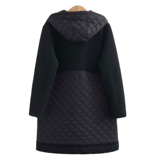 [取扱いサイズ]フリーサイズ M L LL 2L 3L 4L 5L XL XXL XXXL XXXXL 9号 11号 13号 15号 17号 19号♥キルティングコンビフードアウター LLサイズ 3Lサイズ 4Lサイズ 5Lサイズ キルティングと黒無地生地コンビのフードアウター。